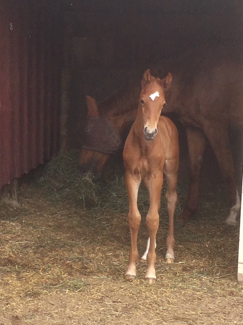 The third (and final) addition to the Red Gate lineup for 2025 was a tall, leggy Hanoverian colt by Wynton out of Boheme (Bugatti Hilltop/Feiner Stern) born at 9:30 pm on May 28th. Our mares have been very considerate with their delivery times this year!