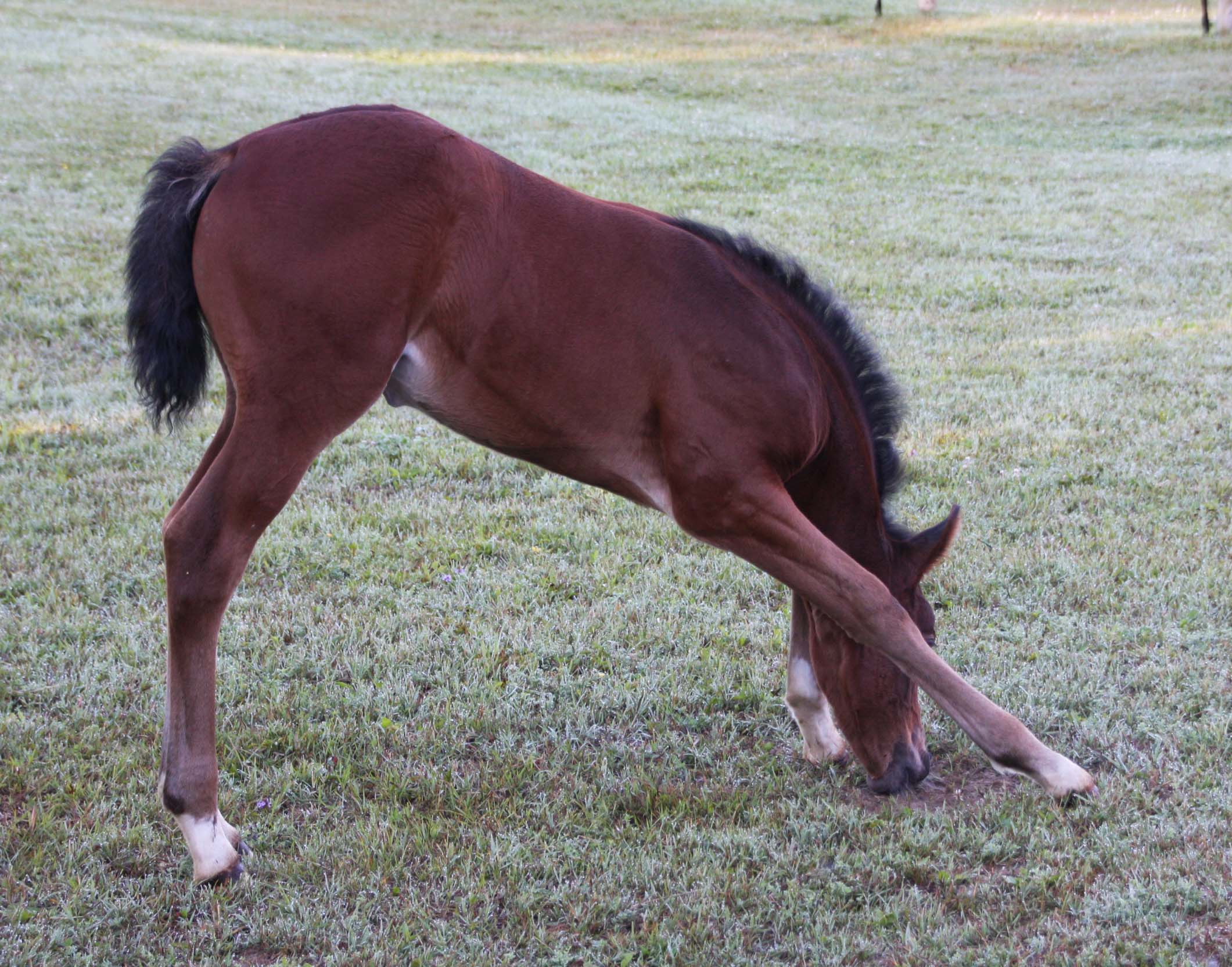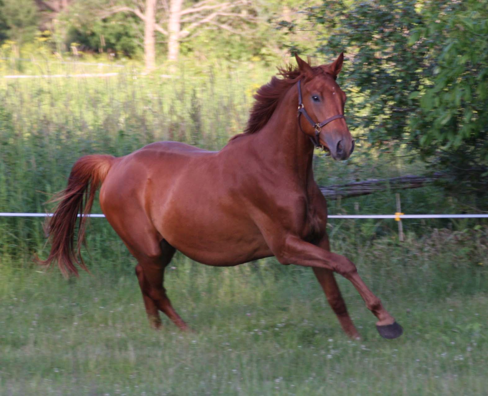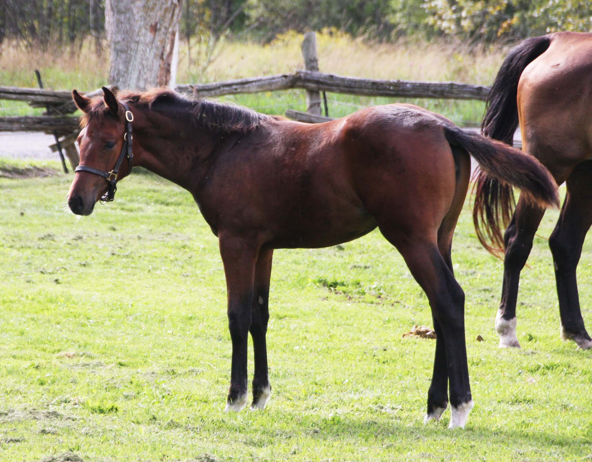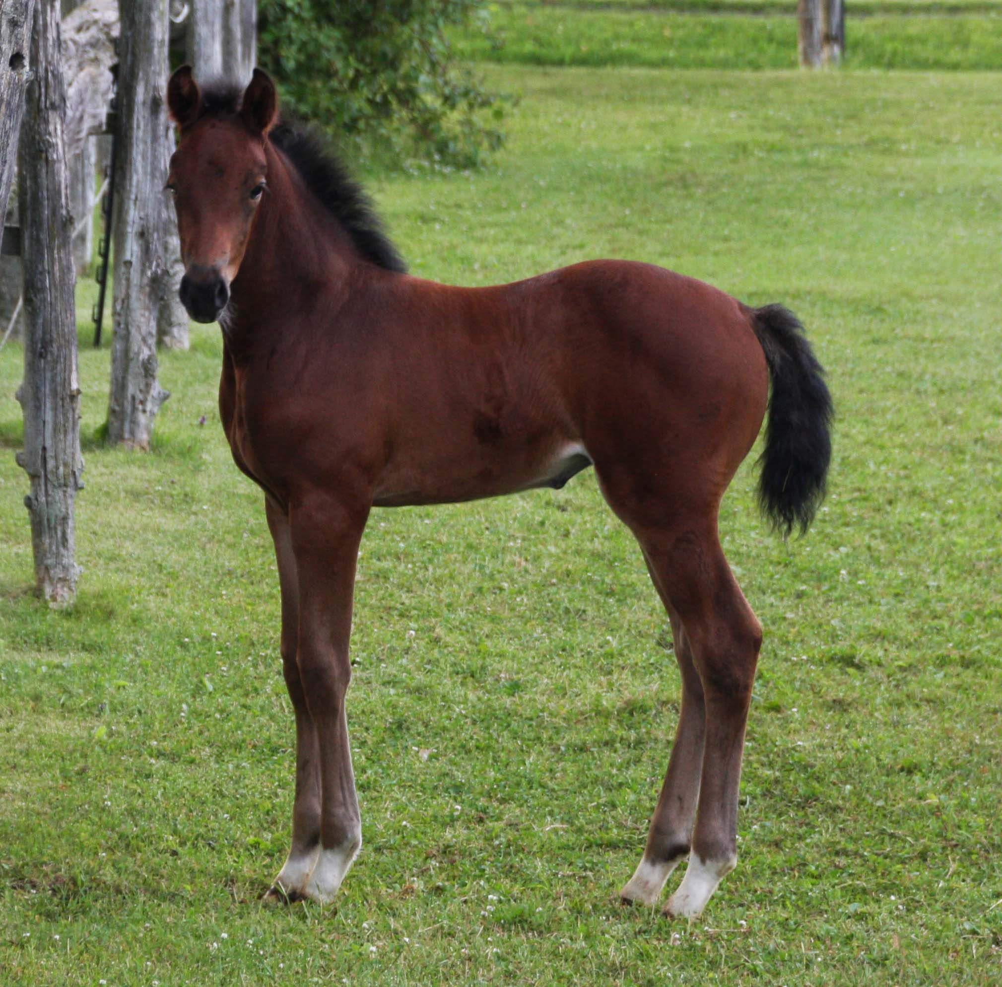 Ouija is bold and full of personality, showing intelligence and curiosity. She has a lovely balanced canter and an uphill, cadenced trot with plenty of suspension. She is an excellent dressage prospect for the future, although her siblings’ versatility and rideability suggest that she may be a prospect for whatever discipline her rider chooses. Ouija was sold in February 2018 to a close friend in Kingston, Ontario, who will provide an excellent home for her.
